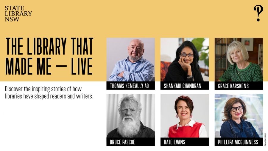 Livestreamed from the State Library, join Bruce Pascoe, Shankari Chandran, Thomas Keneally AO, Grace Karskens and Kate Evans as they reflect on the spaces that have shaped them as readers and writers. Enjoy light refreshments and share your own stories at this special event celebrating reading, creativity and inspiration from libraries.